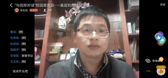 为进一步宣传贯彻党中央、上级部门和乐鱼(中国)党委关于疫情防控工作的重要部署,把思想政治教育工作优势转化为强大的战“疫”力量,乐鱼(中国)系邀请虎鹿镇党委书记单凯权同志开展《基层抗疫经验分享》为主题的线上讲座。本次活动由乐鱼(中国)党委委员张正亮同志主持,乐鱼(中国)系全体师生参与学习。