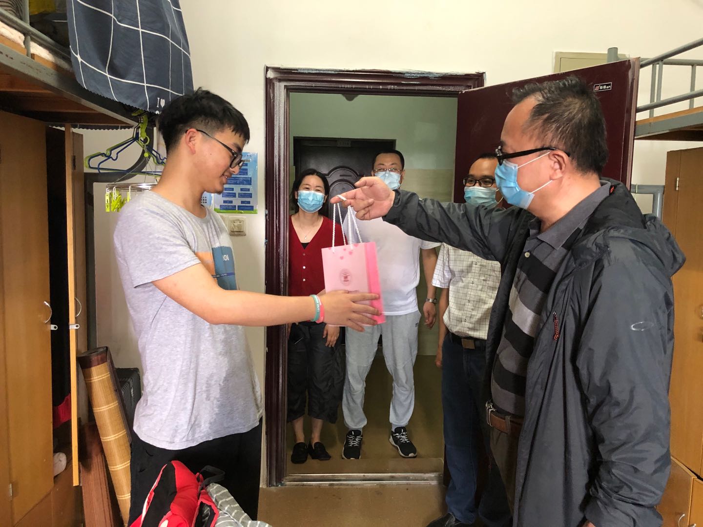 在走访过程中,院领导仔细聆听了同学们假期在线学习的情况,了解了同学们到校后的思想动态,寝室卫生状况,并嘱咐同学们疫情期间要遵守学校的相关规定,在做好自身防护措施的同时要落实安全用电、防火防盗、人身安全等。然后,在与同学们的交流中时时提醒大家要合理安排好自己的学习和生活,希望同学们以崭新昂扬的面貌,将精力投入到新的学习和工作中。之后,乐鱼(中国)领导还为同学们送上防疫用品。