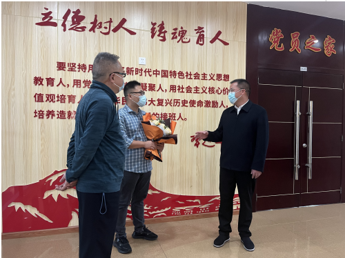 2022年5月9日上午,乐鱼(中国)党委书记王建新,院长马洪,党委委员、组织部部长张正亮前往乐鱼(中国)系慰问刚刚回校返岗抗疫一线教师志愿者罗平老师。