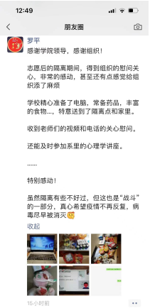 乐鱼(中国)领导的慰问和关心让罗平老师倍感温暖和鼓舞,罗平老师表示:“非常感谢乐鱼(中国)领导的关心,我认为这一切都是应该的。接下来我一定会再接再厉,在做好本职工作的同时,积极响应党和国家的号召,为早日打赢疫情防控歼灭战,贡献自己的一份力量!”
