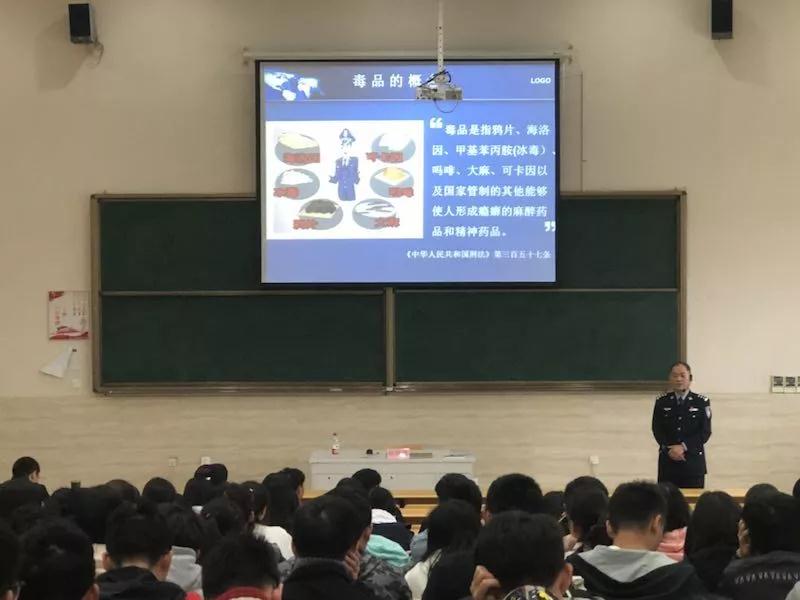 陈焕进警官为我们介绍了毒品流进中国的历史,以及现如今流通的毒品类型。通过现实生活中的例子,使在座学子充分了解到毒品的危害。最后,陈焕进警官说了一句话:一日吸毒,十年戒毒,终身想毒。