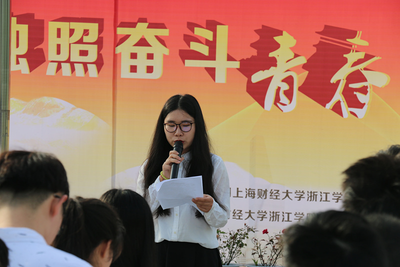 五四精神是以“爱国,进步,民主,科学”为可信的升华了的爱国精神,我们正是要在这一天宣誓,在这一天立志成为一名有理想,有道德,有文化,有纪律的优秀财浙青年。大会仪式首先举行升国旗唱国歌,当嘹亮的国歌声响起,国旗在众人的注目礼下缓缓升起,我们终于在这一刻深切的体会到了五四精神在青春中的热血沸腾。紧接着,金融系主席方璐萍上台带领宣誓,宣誓成为一名遵纪守法的优秀财浙人,宣誓为弘扬五四精神,为拥护党的领导,为传递青春的正能量而拼搏,奋斗。宣誓声还飘荡在空气中时,学生团委副书记陆烨在国旗下进行了讲话,讲述当年先烈们为建立和平自由新中国的美好理想,在刀光剑影下的视死如归与爱国热情,我们聆听老一辈对青年一代的殷切期望,回顾在党的领导下的成长,学习无数优秀青年用鲜血生命,写下的可歌可泣的壮丽诗篇。
