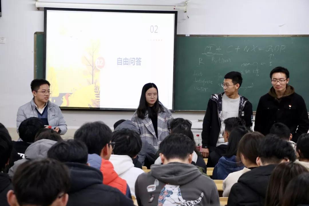 自由问答环节中现场气氛活跃,四位同学对我系学子提出的问题进行详细且专业的回答。