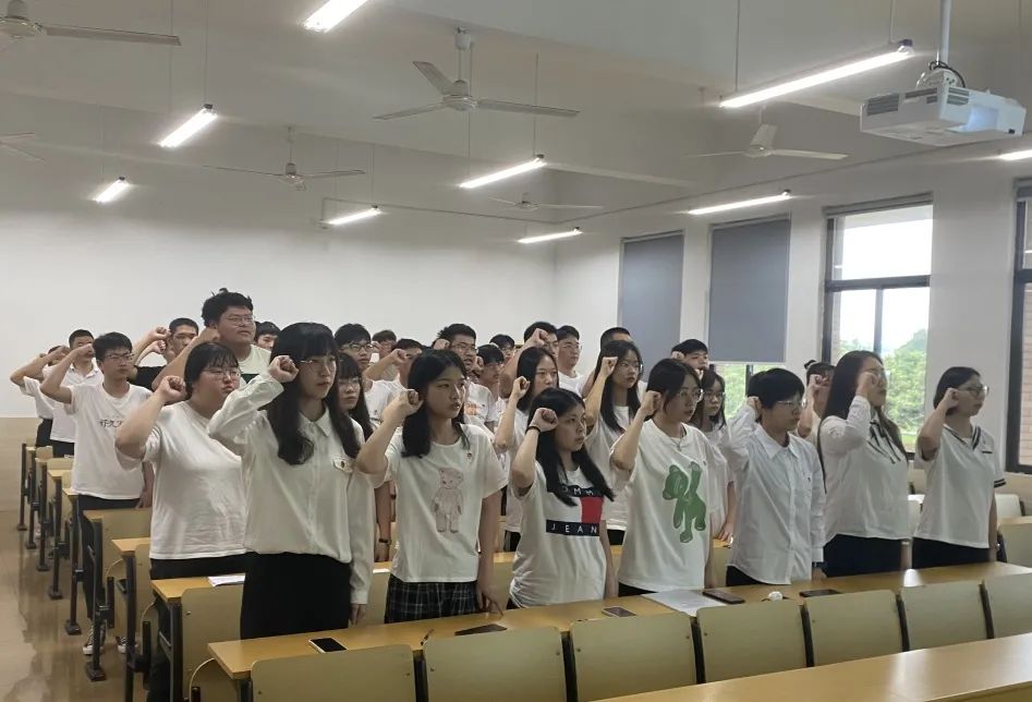 首先,由支部书记带领支部成员重温入团誓词,并齐声歌唱《光荣啊,中国共青团》,展现出广大共青团员的青春风采,旨在带领团员找回入团初心,传递团歌的精神所在。