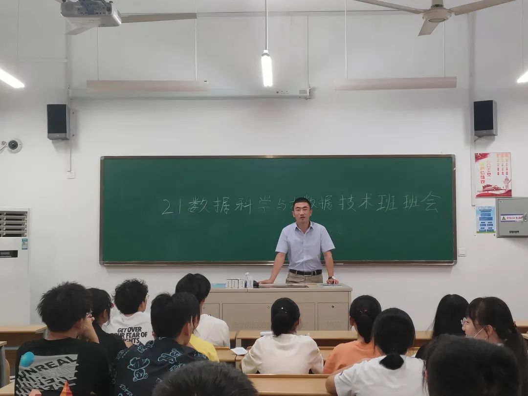 首先来看21数据科学与大数据班,在各位同学做完自我介绍后,班主任吴京京老师向大家简单介绍了本专业的考研和就业情况,对大家日后的学习生活提出了几点要求,比如早晚自习的纪律等。