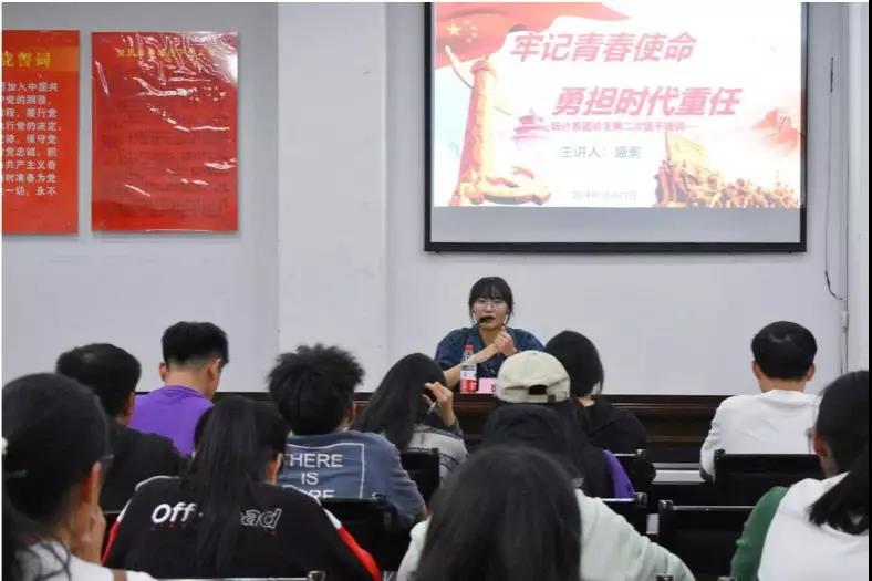 盛奥老师就“牢记青春使命,勇担时代重任”主题,分别从指导学生、信任学生、服务学生三方面做了具体、生动的讲述。盛奥老师强调:“应做青年友,不做青年官”,团总支学生会的成员应敢干事、做实事。作为团员干部,我们要努力增强团队凝聚力、向心力,要始终代表广大青年、赢得广大青年、依靠广大青年,用极大力量做好青年工作。
