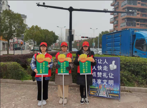 在3月5日的志愿活动中,四位志愿者穿戴统一的服装,手持交通引导牌,在十字路口的四个位置认真地引导市民们整齐有序地通过马路,并及时对闯红灯、违反交通规则的行人加以规劝。尽管天气寒冷,但志愿者们用自己的热情增强了市民们遵守交通规则的自觉性,令微凉的清晨平添了一丝温暖。
