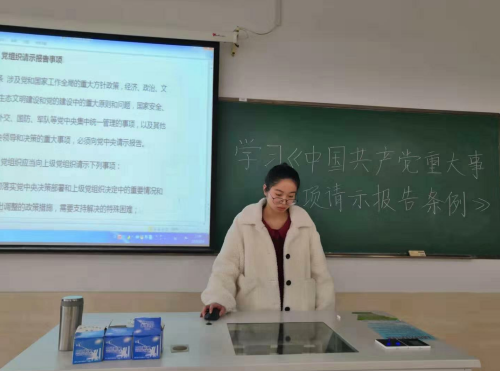 为了认真学习中共中央印发的《中国共产党重大事项请示报告条例》。2019年3月14日中午,乐鱼(中国)系党支部在7幢408召开了《中国共产党重大事项请示报告条例》的学习大会。会议由学生党员冯吉枫主持。